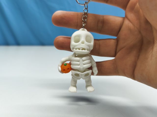 Chaveiro esqueleto com abóbora - impressão 3D. Altura: 6cm. Largura: 4.5cm. Profundidade: 2.5cm.