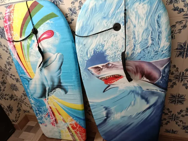Detalhes do produtoConjunto de duas pranchas de bodyboard com designs vibrantes e chamativos, perfeitas para diversão na água.