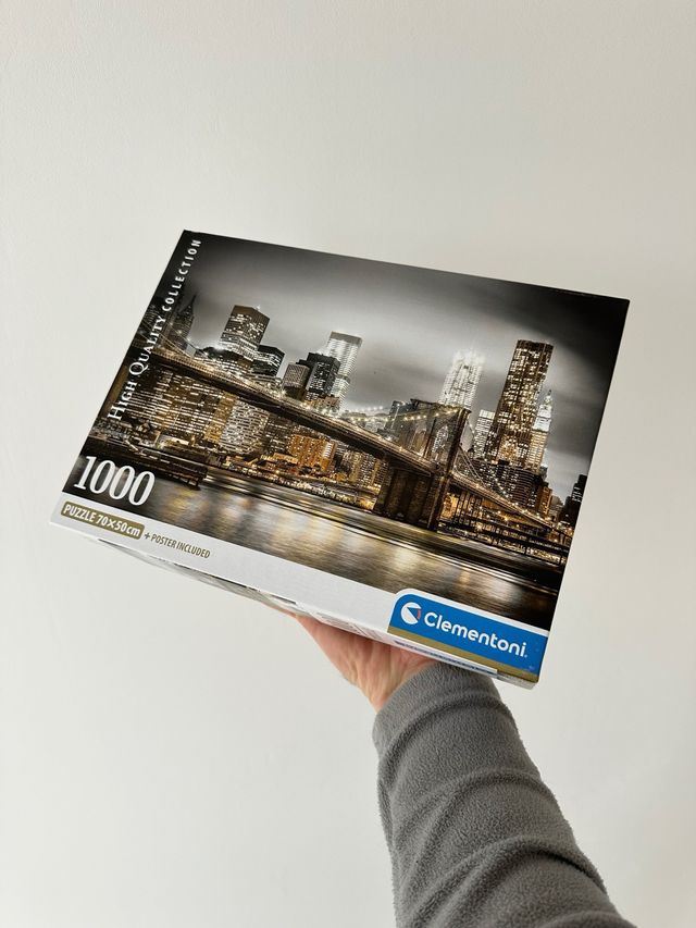 Puzzle de alta qualidade da Clementoni com vista noturna de Nova Iorque e da Ponte do Brooklyn. - 1000 peças - Inclui poster - Dimensões: 70 x 50 cm