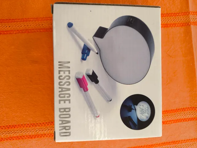 Quadro de mensagens com iluminação e canetas para escrever. - Inclui 2 canetas com apagador. - Funciona com pilhas.