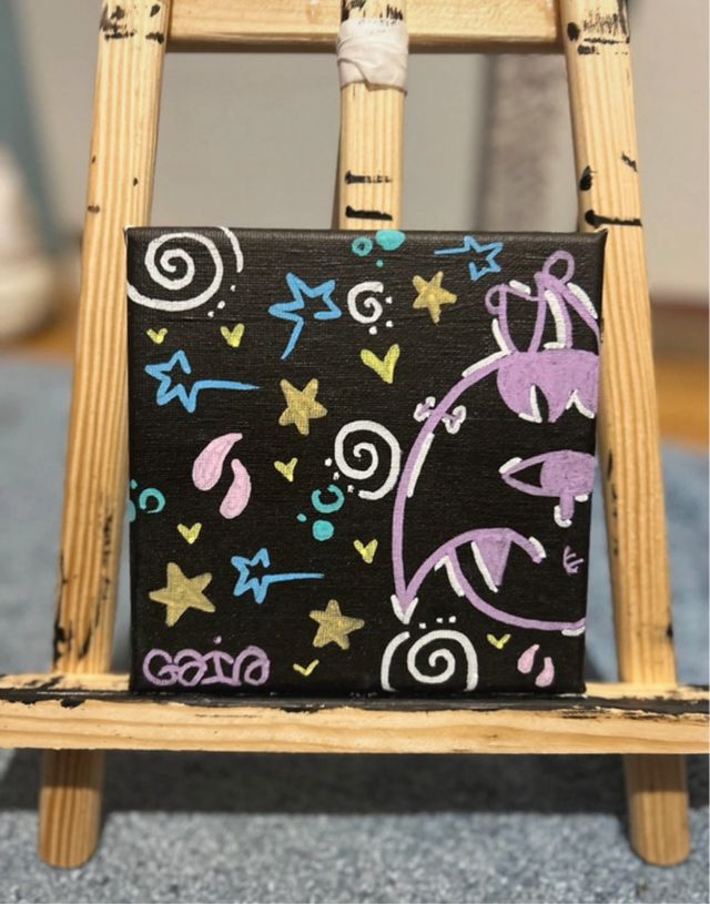 Detalhes do produtoQuadro pintado à mão, com cores vibrantes e um estilo único. Ideal para decoração de ambientes criativos.
