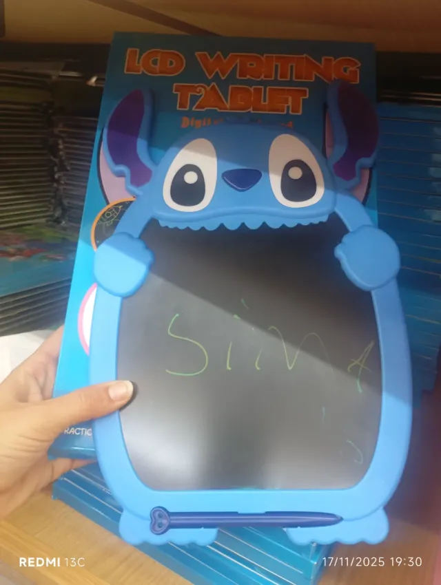 Detalhes do produtoQuadro de escrita LCD em formato do Stitch, ideal para crianças.