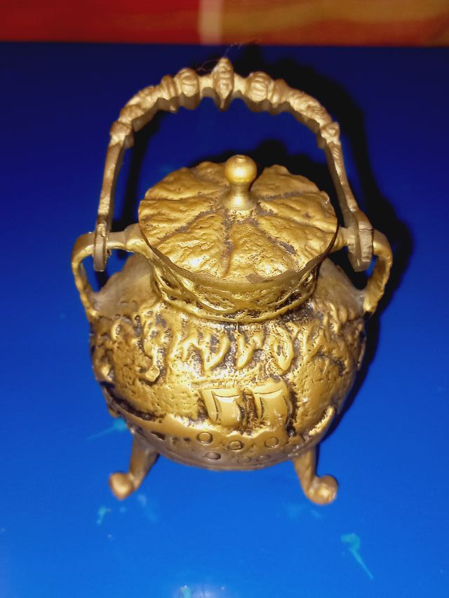 Em bronze, com três pés e uma alça de transporte. Em excelente estado e com cerca de 12cm de altura.