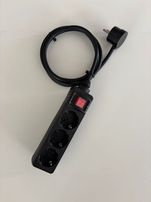 Enchufe de codo plano Ideal para conectar detras de un mueble ya que sobresale muy poco Para enchufar 3 cables Cable de 1,5m
