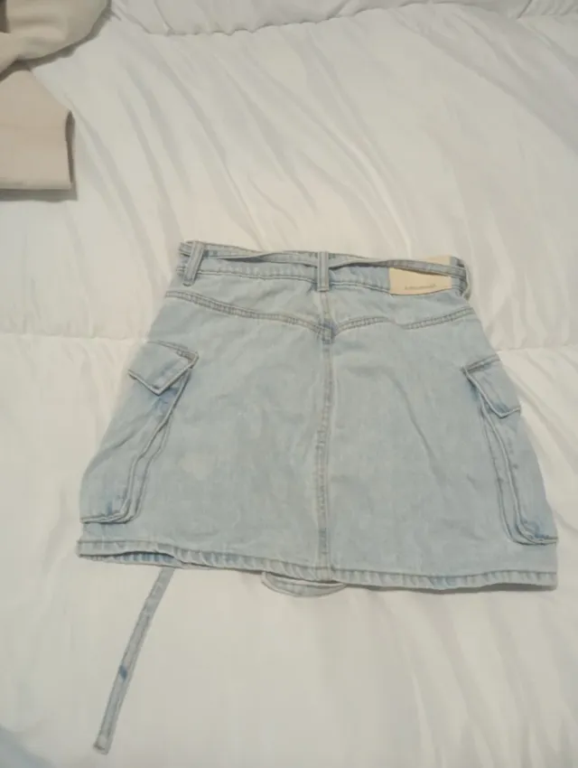 Saia jeans azul cargo