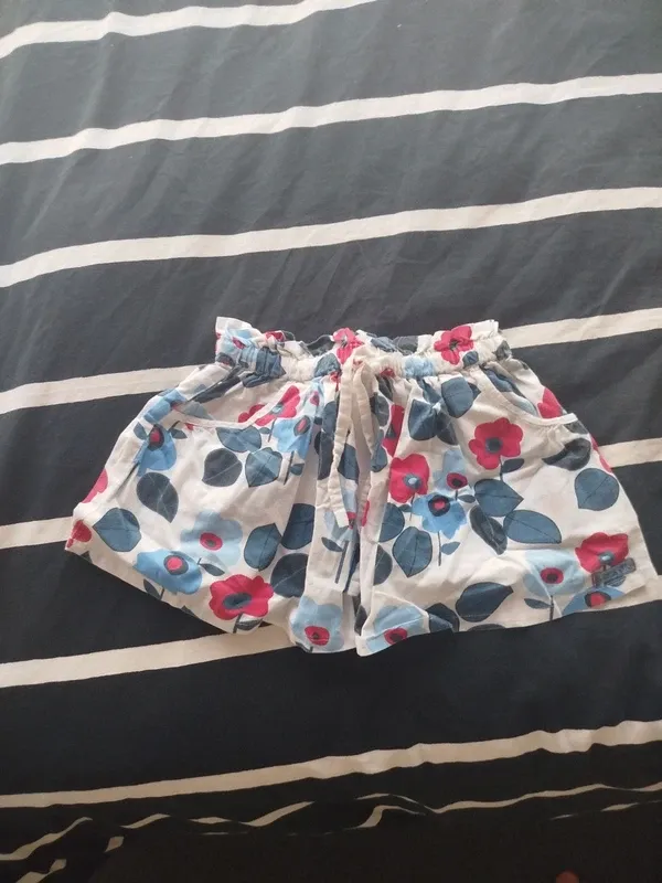 Saia Tuc Tuc com padrão floral. - Cintura elástica com cordão. - Bolsos laterais. - Estampa de flores vermelhas e azuis.