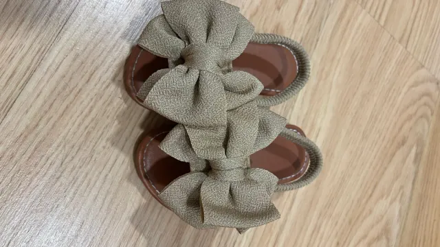 Sandália infantil da marca Shein, com um charmoso detalhe de laço. TAMANHO 24 - Cor bege. - Design delicado com laço duplo. - Solado em material sintético.
