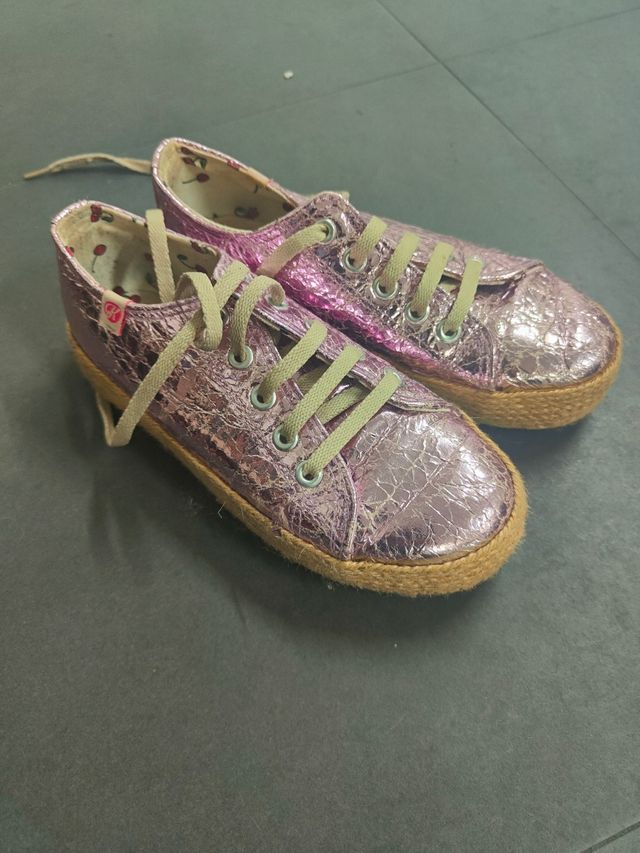 Detalhes do produtoTenho para venda um par de sapatilhas deslumbrantes! ✨ Estas sapatilhas metalizadas, num tom rosa charmoso, parecem novas. - Tamanho 34. - Cor rosa metalizada. - Material com textura ligeiramente craquelada. - Ideal para um look moderno e divertido.