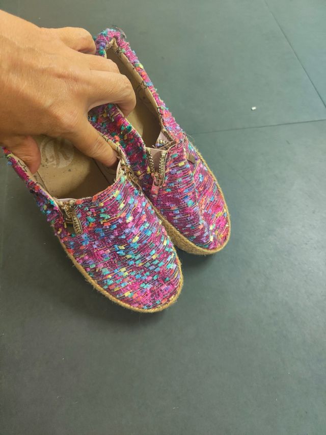 Detalhes do produtoTenho para venda um par de sapatilhas para menina, na cor rosa. São do tamanho 34 e não têm atacadores. As sapatilhas são coloridas e têm um design alegre. - Tamanho: 34- Sem cordões- Cores vibrantes