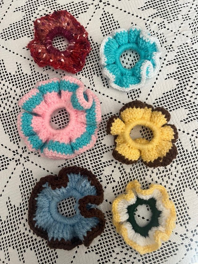 Scrunchies de Croché Feitos à Mão