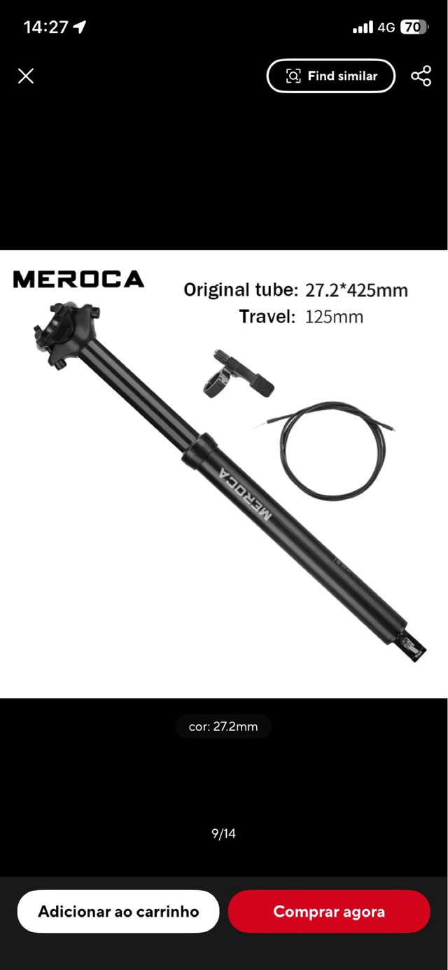 Meroca selim telescópico para bicicleta de montanha. (Novo) - Curso de 125mm. - Tubo original: 27.2 x 425mm. - Inclui comando remoto .( sem cabo e bicha)