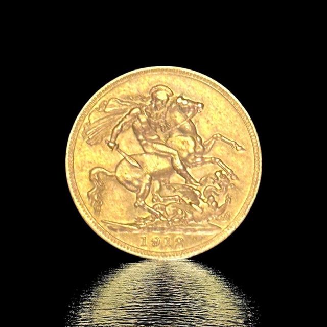 Detalhes do produto1 libra do Reino Unido de 1912 Moeda de Ouro 22K (toque 917‰) com 8g.