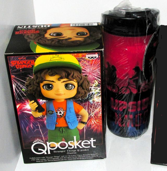 Stranger Things Q posket Dustin, Banpresto + Travel Mug Figura Netflix Stranger Things, Nova/Selada. + Travel Mug, Novo/Selado