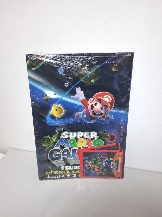 Detalhes do produtoSuper Mario Galaxy: Álbum oficial + 3 stickers. Em ótimo estado, lacrado em plástico. Inclui o álbum e 3 packs de figurinhas. Ideal para colecionadores! - Álbum de figurinhas Super Mario Galaxy; - 3 figurinhas; - Lacrado em plástico. Medidas do produto