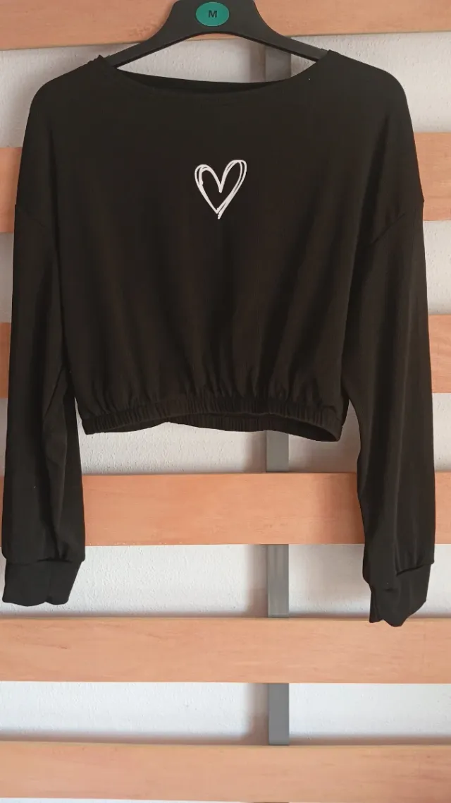 T-shirt preta com coração branco
