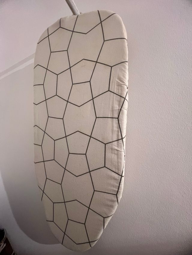Detalhes do produtoTábua de engomar de mesa com um padrão geométrico.