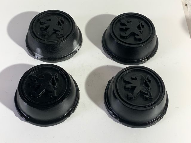Conjunto de tampas para jantes Peugeot. Peça de substituição com o emblema do leão. - Cor preta. - Design com relevo.