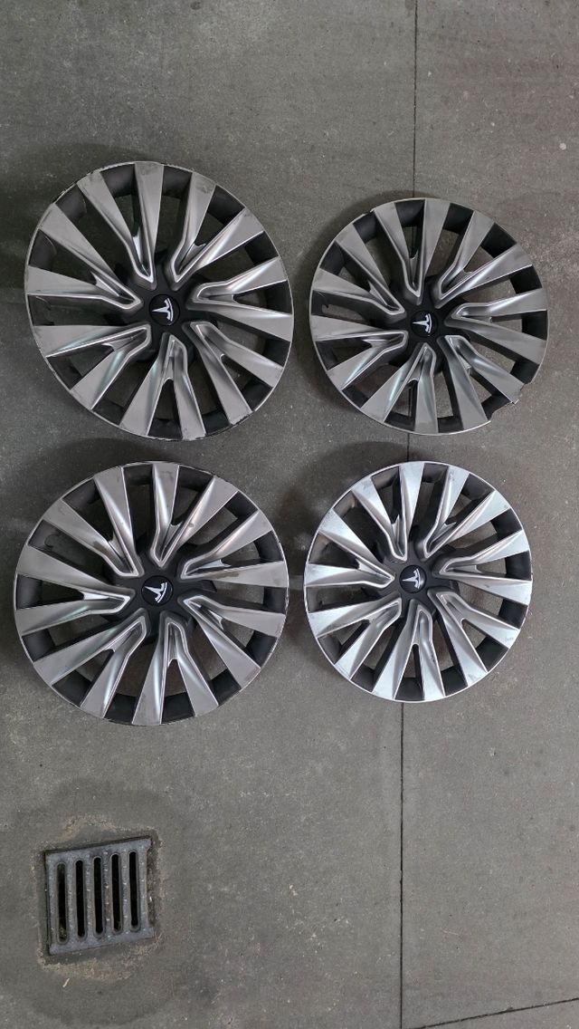 Tampões para jante 18" para Tesla Model 3 Highland. 3 Tampões têm arranhões e 1 está danificado.