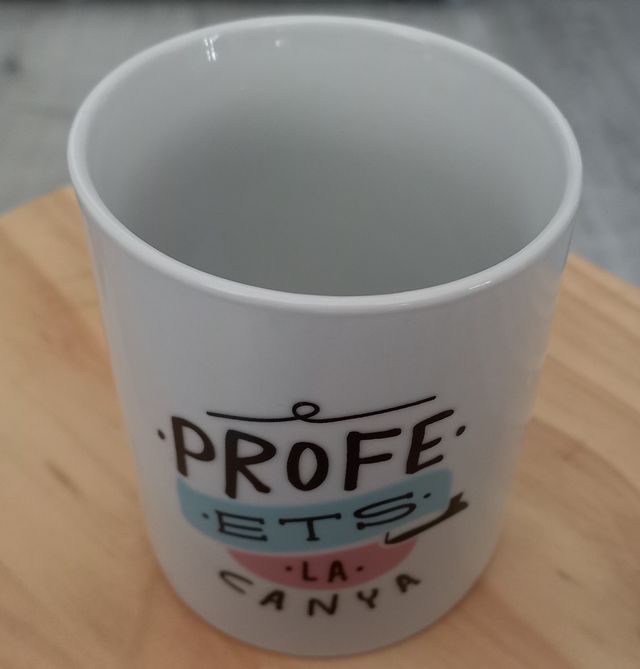Caneca para dar a um professor. Escrito em catalão. Como novo.