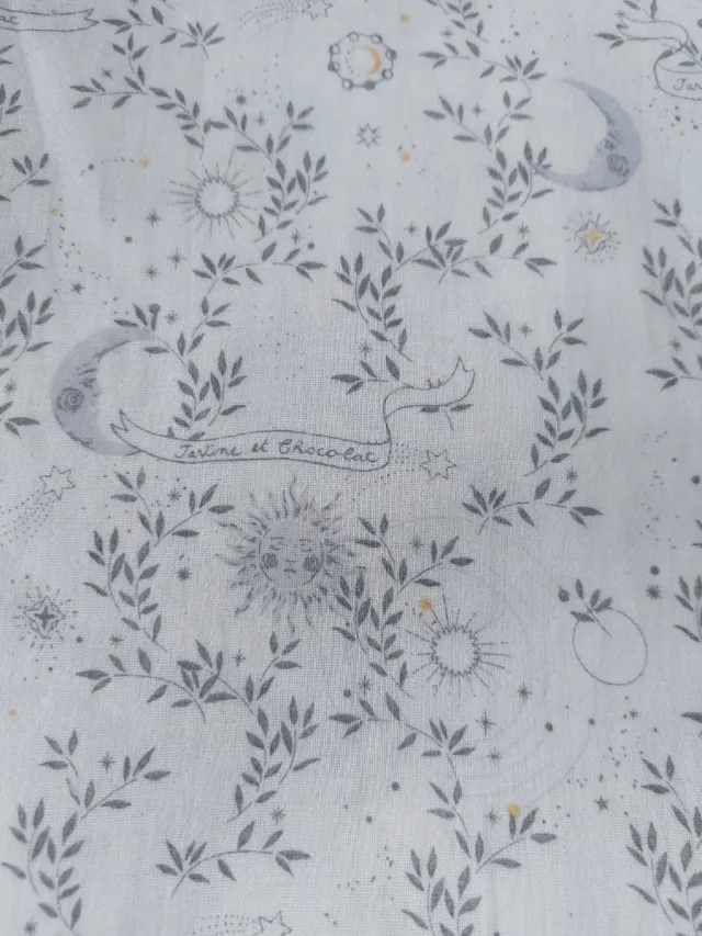 Tecido doble gaze com um padrão celestial encantador da marca Tartine et chocolat.