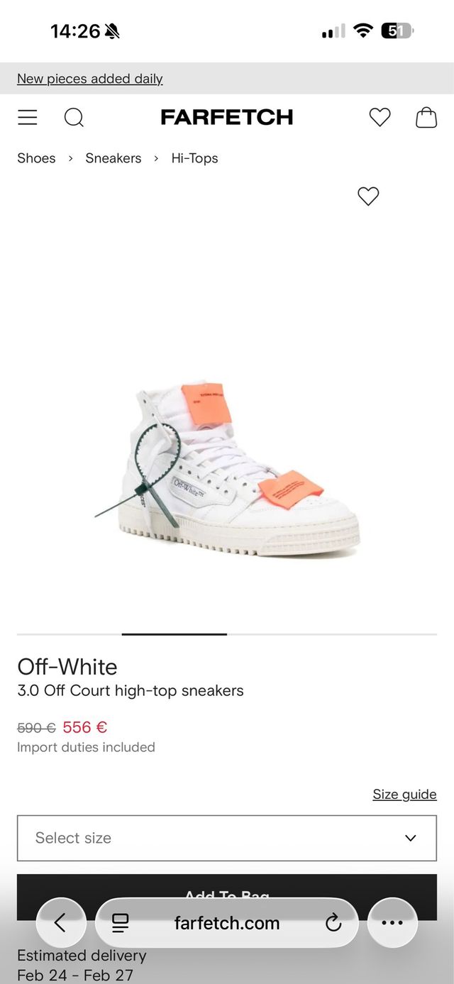 Tênis Off-White 3.0 Off Court de cano alto. - Usados apenas uma vez. - Em excelente estado, como novos nas fotos.
