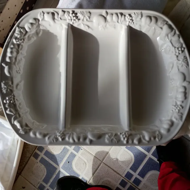 Travessa de loiça branca com divisórias