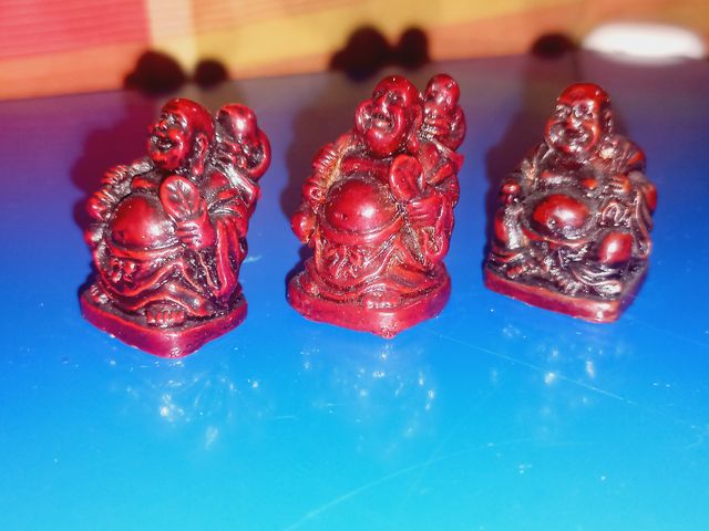 Três mini estatuetas de Buda Risonho