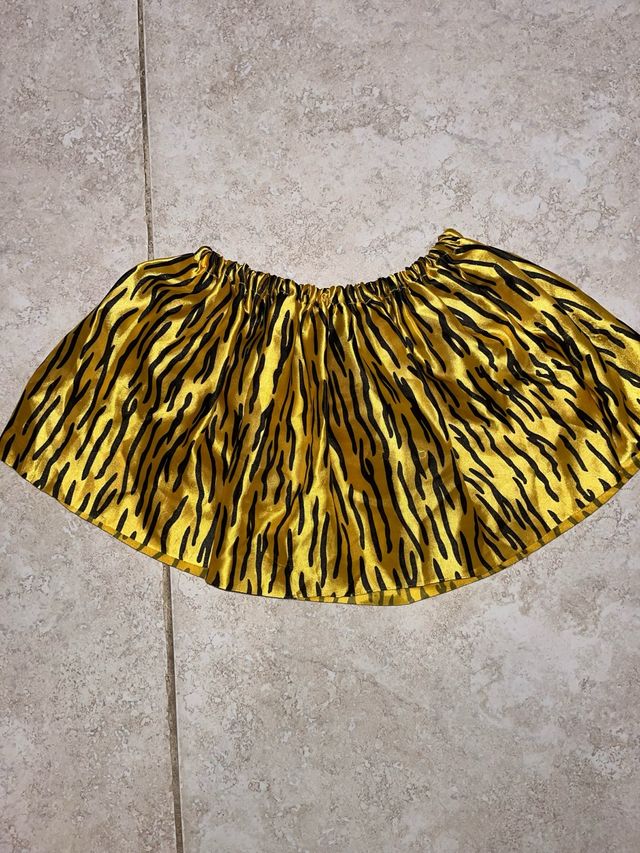 Tutu amarelo com riscas pretas. É de criança, mas nao tem tamanho. Para mais informações acerca do tamanho, mande mensagem.