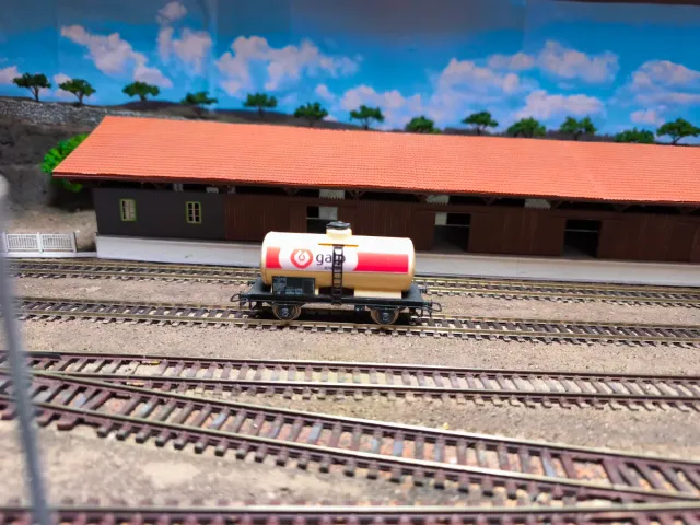 Vagão de modelo em escala com transformação GALP. - Detalhes da marca GALP. - Vagão de carga tipo cisterna. - Escala HO - Rodados metalicos