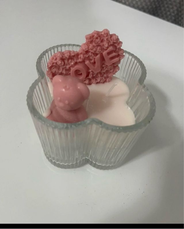 Vela branca com urso e coração