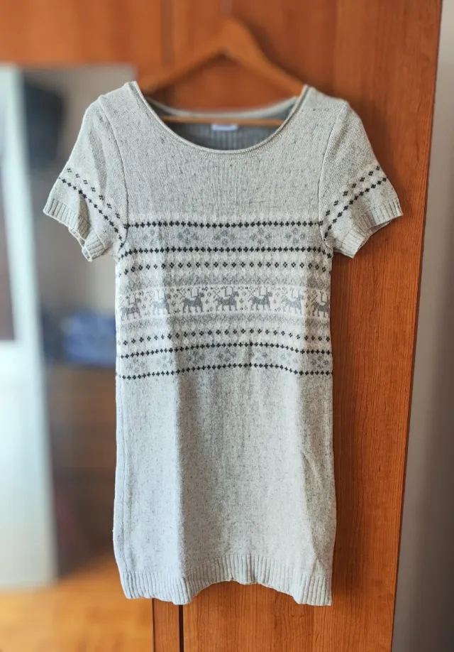 Vestido de Inverno Cinza e Branco