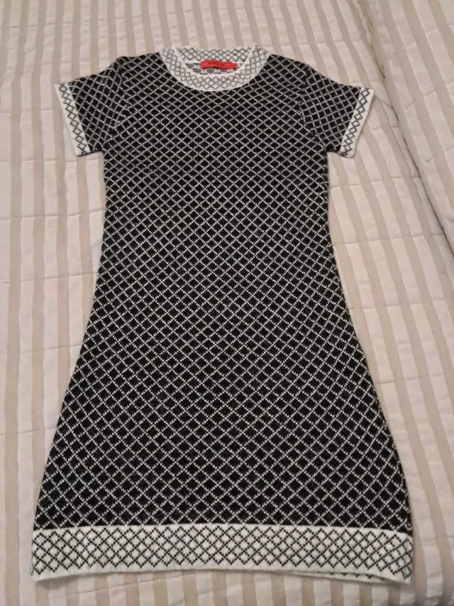 Vestido de malha preto e branco