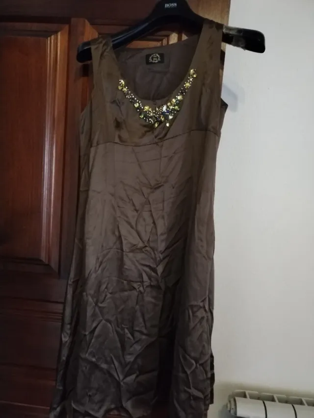 Vestido Globe castanho adornado com pedrarias