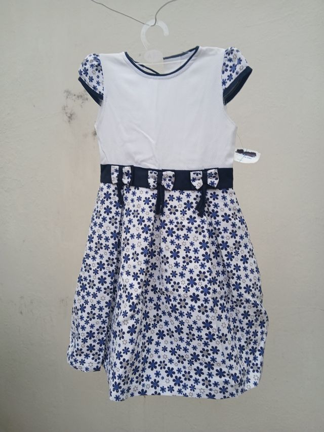 Vestido Infantil - Flores Azul e Branco