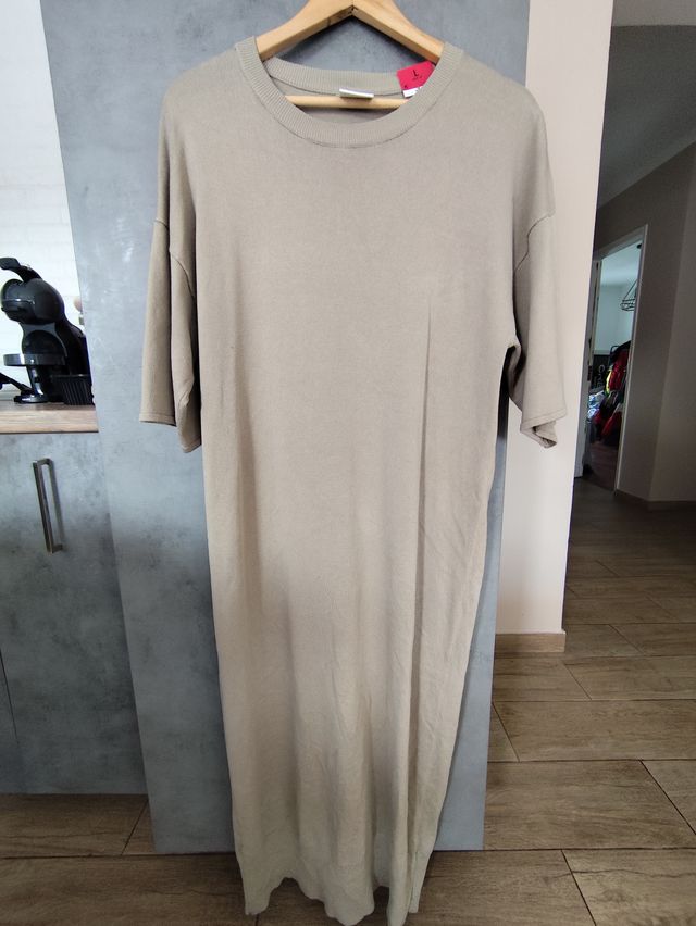 Vestido malha comprido bege tamanho L