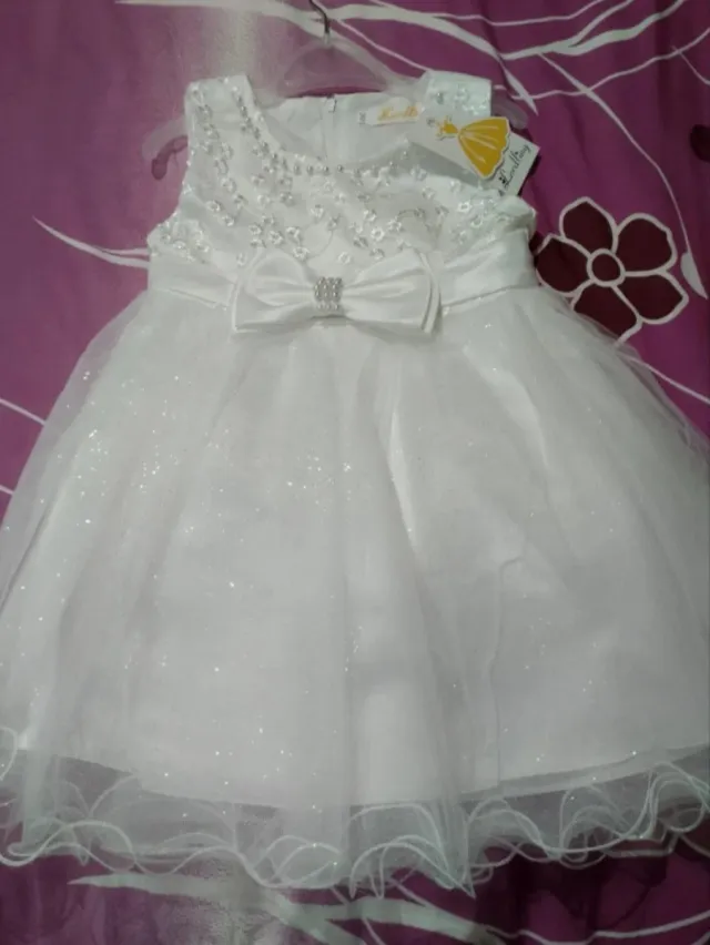 Vestido branco para menina, novo com etiqueta. - Tamanho 24 a 36 meses. - Detalhes em pérolas e laço. - Saia com brilho.
