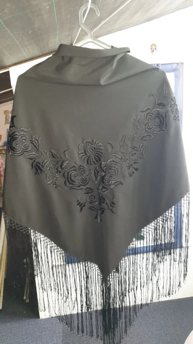 Xaile preto bordado com franjas