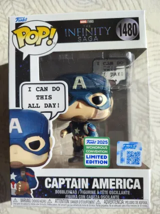 Figura Funko Pop Marvel do Capitão América da Saga do Infinito. - Edição limitada da convenção Wondrous - Inclui adesivo de edição limitada.