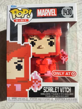 Figura Funko Pop Scarlett Witch 8-Bit da Marvel, exclusiva da cadeia Target apenas existente nos Estados Unidos da América. - Personagem: Scarlet Witch. - Número de série: 1430. - Design inspirado em 8-bits. - Embalagem original.
