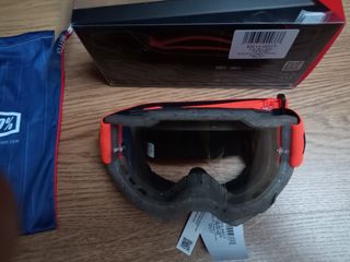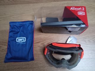 Artigo novo com etiquetas em embalagem original Óculos de proteção da marca 100%, modelo Accuri 2. Inclui uma bolsa de transporte azul. - Lente transparente - Bolsa de transporte azul com logo 100%.