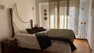 Mobilia de quarto de casal em madeira de faia com pormenores decorativos em ferro pintado, composta por cama de casal 140x200 cm com estrado (não inclui colchão), camiseiro com gavetas e duas mesas de cabeceira. Modelo personalizado e exemplar único. Muito bom estado. Não inclui transporte. Recolha na zona da Lourinhã. Aceitamos propstas
