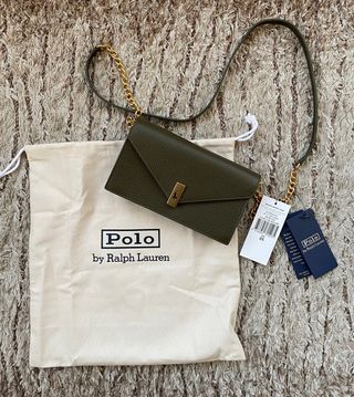 Bolsa tiracolo da Polo Ralph Lauren em pele com fecho dourado. - Detalhe de corrente dourada. - Inclui saco de proteção original.
