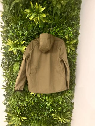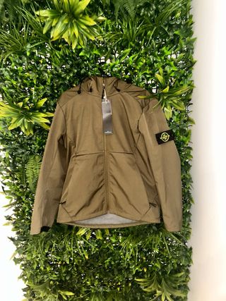 Casaco da Stone Island em tom verde oliva. Peça com capuz e fecho frontal. - Detalhe de logo no braço esquerdo. - Bolsos frontais com fecho. - Capuz ajustável com cordão.