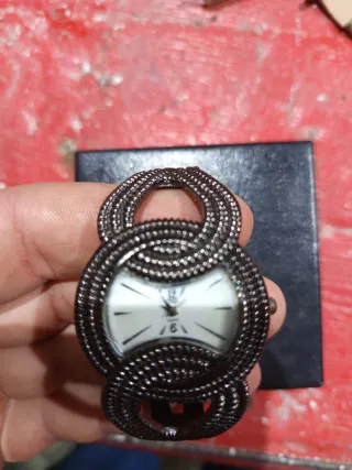 Este relógio de senhora apresenta um design único e sofisticado. - Bracelete com entrelaçado. - Mostrador com detalhes. - Acabamento em preto e prateado. Necessita pilha