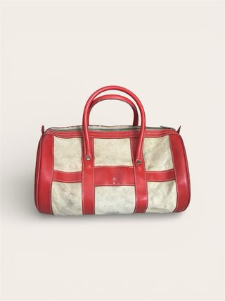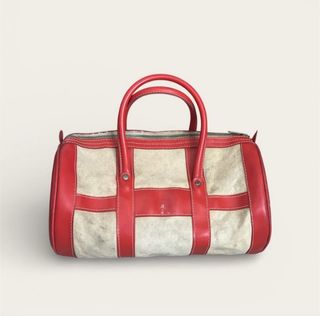 Mala de viagem vintage da TAP, um acessório com estilo. - Design clássico em vermelho e bege. - Dimensões: 30cm x 20cm.