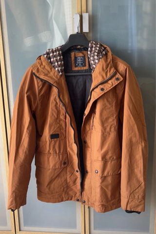 Parka da Bershka com um padrão xadrez no capuz. - Fecho de correr frontal. - Bolsos com botões. - Gola alta.