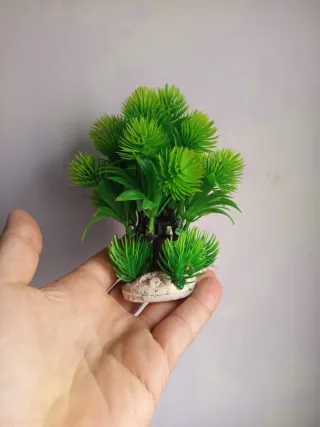 Este acessório para aquário simula uma planta artificial, adicionando um toque de cor e vida ao seu ambiente aquático. - Base em pedra para estabilidade. - Folhagem verde vibrante.