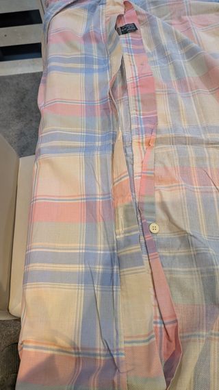 Camisa tamanho 42 italiano (38 europeu,senão não vendia😊) com um padrão geométrico vibrante e um design moderno. - Mangas compridas com punhos altos - Parte superior com amarração e botões ocultos. - Tecido leve e fluido.