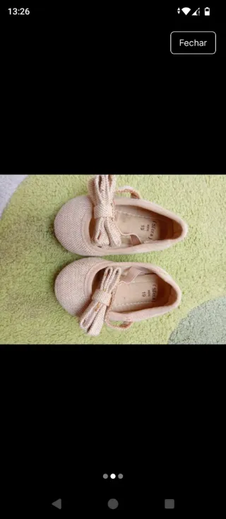 Sabrinas em tecido bege com um laço decorativo. - Fecho ajustável. - Sola antiderrapante. - Detalhe de laço na frente.