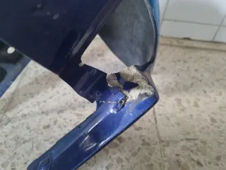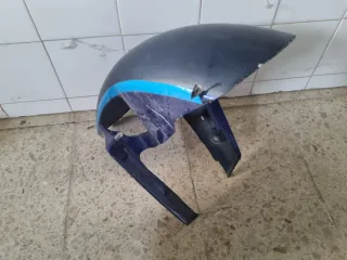 Guarda-lamas de corrida para R3, modelo 2019-2025. Peça em fibra de vidro azul com detalhes em azul claro. Partido mas facilmente reparavel. - Design aerodinâmico. - Acabamento em azul escuro. - Detalhe de faixa azul clara.